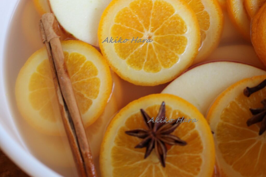 肌寒くなってくる頃に飲まれるのが、これに柑橘類やスパイスを入れるなどして温めたもので、「Mulled Cider」とか「ホットアップルサイダー」と呼ばれます。ホリデーシーズンを代表する伝統的な飲み物のひとつで、感謝祭やクリスマスを舞台にしたミステリにもよく登場します。「アメリカ菓子とミステリ」(原書房)にも載せています。